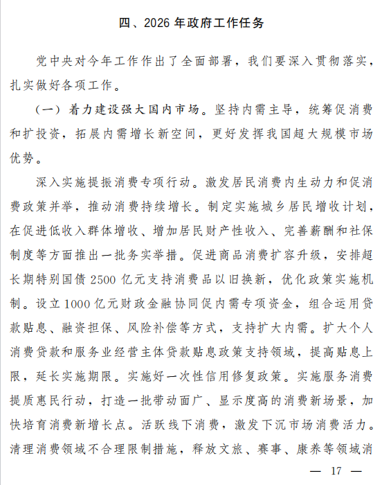 政府工作报告—2026年政府工作任务